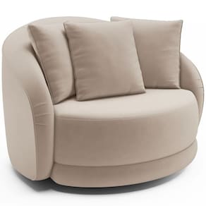 Poltrona Decorativa Para Sala De Estar Base Giratória Witta M03 Veludo Bege - Lyam Decor