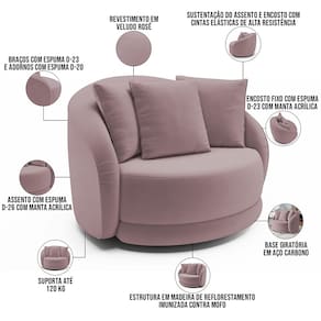 Indicado para uso residencial, sua limpeza deve ser feita com pano umedecido em água limpa, sem esfregar, não utilizar produtos abrasivos, desengordurantes, álcool ou solvente. Nunca sentar nos braços ou encosto do produto.