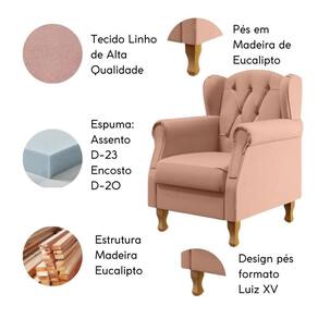 Transforme sua sala com a Poltrona Decorativa Elisa, o móvel ideal para quem busca poltrona reforçada, elegante e moderna. Com design sofisticado, pés em estilo Luis XV e acabamento em linho rosê, ela é perfeita para dar aquele toque de charme e personalidade à sua recepção, escritório, quarto ou home office.