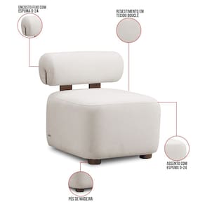 A Poltrona Helora é uma excelente escolha para quem busca uma peça com design artístico, elegante e confortável. Seu estilo inovador transforma qualquer ambiente em um visual único e marcante oferecendo um espaço acolhedor e relaxante. A poltrona possui base de madeira maciça e contém um lindo detalhes em madeira apoiada no encosto que além de garantir durabilidade e resistência realça todo o charme da peça. Conta com um apoio de cabeça em formato de cone, assento quadrado com cantos arredondados e um revestimento em tecido Bouclê Cinza Claro, que cria uma conexão entre a peça e o ambiente. Pode ser utilizada em sala de estar, recepções, escritórios, lojas e espaços comerciais, ou qualquer outro espaço que você queira decorar com estilo e bom gosto. Ela tem uma estrutura em madeira de reflorestamento eucalipto, que garante a resistência e a sustentabilidade do produto. Ela suporta até 120 kg de peso, podendo ser utilizada por pessoas de diferentes biotipos. Ela tem um acabamento reforçado e espuma de qualidade D24, que oferece maciez e aconchego. Ela é fácil de transportar, pois tem um peso leve e um tamanho compacto. A Poltrona Helora é um produto que vai fazer a diferença na sua decoração e no seu bem-estar. Garanta já a sua!