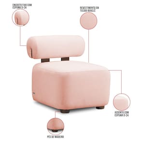 A Poltrona Helora é uma excelente escolha para quem busca uma peça com design artístico, elegante e confortável. Seu estilo inovador transforma qualquer ambiente em um visual único e marcante oferecendo um espaço acolhedor e relaxante. A poltrona possui base de madeira maciça e contém um lindo detalhes em madeira apoiada no encosto que além de garantir durabilidade e resistência realça todo o charme da peça. Conta com um apoio de cabeça em formato de cone, assento quadrado com cantos arredondados e um revestimento em tecido Bouclê Rosê, que cria uma conexão entre a peça e o ambiente. Pode ser utilizada em sala de estar, recepções, escritórios, lojas e espaços comerciais, ou qualquer outro espaço que você queira decorar com estilo e bom gosto. Ela tem uma estrutura em madeira de reflorestamento eucalipto, que garante a resistência e a sustentabilidade do produto. Ela suporta até 120 kg de peso, podendo ser utilizada por pessoas de diferentes biotipos. Ela tem um acabamento reforçado e espuma de qualidade D24, que oferece maciez e aconchego. Ela é fácil de transportar, pois tem um peso leve e um tamanho compacto. A Poltrona Helora é um produto que vai fazer a diferença na sua decoração e no seu bem-estar. Garanta já a sua!