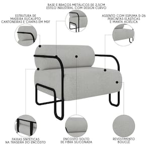 Para você que não abre mão do conforto aliado à beleza e sofisticação, a Poltrona Decorativa para Sala Industrial Kira K04 Bouclê Cinza Claro, da Mpozenato, é a opção perfeita para compor a sua sala de estar.