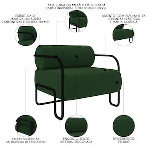 Para você que não abre mão do conforto aliado à beleza e sofisticação, a Poltrona Decorativa para Sala Industrial Kira Z08 Veludo Verde Musgo, da Mpozenato, é a opção perfeita para compor a sua sala de estar.