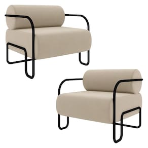 Com design moderno e inovador inspirado no estilo industrial, expresso pela base metálica com desenho curvo, esse kit com 02 poltronas decorativas vai complementar não somente a decoração da sala de estar ou living, como também poderá ser aproveitada em diversos ambientes como recepção, escritório, clínicas, dentre outros e, assim, oferecer o máximo de conforto a sua família ou clientes, enquanto cria uma sensação indescritível de bem-estar.