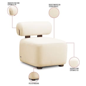 Madeira maciça, Eucalipto, Espuma D-24, Tecido BouclêVendido e entregue por DIPLANY AMBIENTES LTDA.