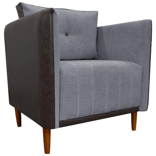 Poltrona Decorativa Para Sala Recepção Consultório Aviv Luxo Corino E Linho