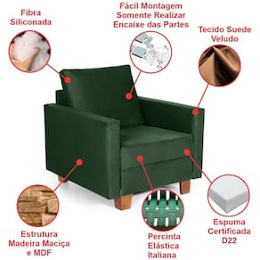 Poltrona Decorativa Para Sala Veludo Plaza Verde - Straub Web