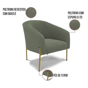 Poltrona Decorativa Pé De Ferro Dourado Stella Bouclê D03 - D'rossi Cor Menta