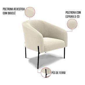 Tem novidades chegando por aqui! Olha só essa nossa inédita Poltrona Stella Bouclê. A Poltrona Stella Bouclê é para todas as ocasiões, é ideal para você relaxar, assistir tv ou ler um livro, mantendo-o confortável ao longo do dia! Um estofado versátil, que foge do convencional pelo seu design e tecido luxuoso. Seu formato curvo, marcante e sofisticado, oferece conforto de forma excepcional, com aquela sensação de abraço, que deixa o coração quentinho! Ela é fácil de transportar, pois tem um peso leve e um tamanho compacto. Ela suporta até 120 kg de peso, podendo ser utilizada por pessoas de diferentes biotipos. Desenvolvida com atenção aos detalhes para atender todas suas expectativas e necessidades, seu aspecto arredondado e anatômico possibilita que a postura fique sempre alinhada mantendo a coluna na posição correta. Ela dispõe de um acabamento impecável revestida em Bouclê em tom Bege, um tecido um tecido maleável que além de ser muito bonito é a grande tendência do momento, uma lã mais refinada e quente com toque suave semelhante à textura natural da ovelha. Contém uma estrutura em madeira de reflorestamento eucalipto, sua sustentação é dada pelos Pés de Ferro Lateral Preto, que garante mais segurança e firmeza ao sentar-se. Ela tem um acabamento reforçado e espuma de qualidade D23, que oferece maciez e aconchego. Além do mais ela tem assento com persintas elásticas, que proporcionam flexibilidade e conforto. A Poltrona Stella é um produto de alta qualidade, beleza e funcionalidade. Ah! Vale a pena lembrar que a Poltrona Stella Bouclê, foi produzida em quantidades limitadas para aqueles que procuram criar um visual diferenciado e exclusivo. Então, não deixe de aproveitar esse lançamento, hem! Leve seu Kit 02 Poltronas agora mesmo.