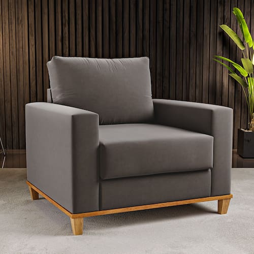 - Pode Ser Montado Invertido?: Não - Pés com regulagem de altura?: Não - Possui Pés?: Sim - Possui Sapatas?: Não - Categoria: Poltrona - Material da Estrutura: Eucalipto - Espessura da Estrutura: 30 mm - Enchimento do Assento: D-23 - Enchimento do Encosto: Fibra Siliconada - Tipo de Tecido: Veludo - Escala de Brilho: Semi-Brilho - Como os Móveis Chegarão em Minha Casa?: Desmontado em caixas, acompanhado de todas as peças, ferragens e manuais para montagem. - Grau de Dificuldade de Montagem: Baixo - Sistema de Montagem: Parafusos, cavilhas, cola e minifix. - Indicação de Uso: Sala de Estar, Escritório, Jardim, Decoração de Ambientes - Recomendação de Manutenção: Utilizar pano levemente umedecido, seguido de pano seco. Não utilizar quaisquer produtos abrasivos. - Garantia (dias): 90 Dias - Quantidade de Pés: 4 - Tipo de Poltrona?: Poltrona - Possui Gavetas?: Não - Possui Portas?: Não - Possui Espelho?: Não - Possui Prateleiras?: Não - Possui Puxadores?: Não - Possui Tampo?: Não - Possui Rodízios?: Não - Revestimento/Acabamento: Tecido - Possui Borda de PVC nas Bordas?: Não - Necessita de Montagem: Sim - Observação: Objetos decorativos que aparecem nas imagens, não acompanham o produto. A capacidade de carga considera que o peso está distribuído igualmente pela peça. As cores das imagens podem variar de acordo com as configurações do seu monitor e/ou da iluminação do ambiente onde o produto está inserido. As imagens indicam uma sugestão