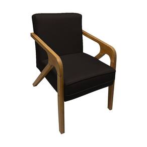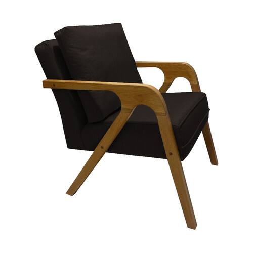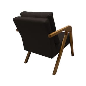 Poltrona Decorativa Pés em Madeira Maciça Monaco Linho Marrom Escuro