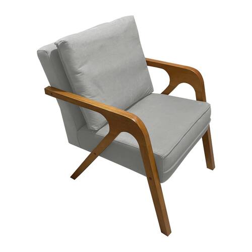 Poltrona Decorativa Pés em Madeira Maciça Monaco Veludo Cinza Claro