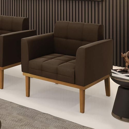 Material da Estrutura: Madeira de Eucalipto ReflorestamentoAssento: Espuma D-23Encosto: Espuma D-23Material dos Pés: Base Fixa em MadeiraRevestimento: SuedePeso Suportado: 120kgConteúdo da Embalagem: 1 PoltronaNecessita de Montagem: Somente dos pés Instruções/Cuidado: Evitar exposição ao sol, para que o produto não sofra alterações na cor do tecido. Não limpar com escovas ou produtos abrasivos.