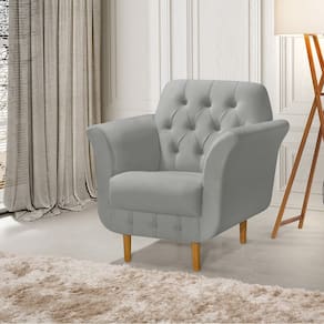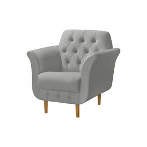 Poltrona Decorativa Pés Palito em Madeira Playa Veludo Cinza Claro