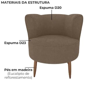 Poltrona Savana, charme orgânico com toque contemporâneo para sua decoração. Com estrutura em Madeira de Eucalipto (reflorestamento) e MDF. Estofada com espumas D23 (assento) e D20 (encosto), revestida em tecido Bouclé (macio e encorpado), possui formato arredondado com encosto tipo concha e 4 pés palito também em madeira. Este produto será entregue em 01 volume.