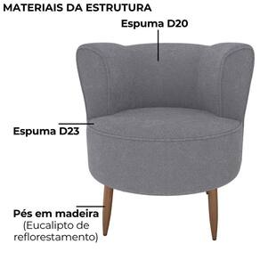 Poltrona Savana, charme orgânico com toque contemporâneo para sua decoração. Com estrutura em Madeira de Eucalipto (reflorestamento) e MDF. Estofada com espumas D23 (assento) e D20 (encosto), revestida em tecido Bouclé (macio e encorpado), possui formato arredondado com encosto tipo concha e 4 pés palito também em madeira. Este produto será entregue em 01 volume.