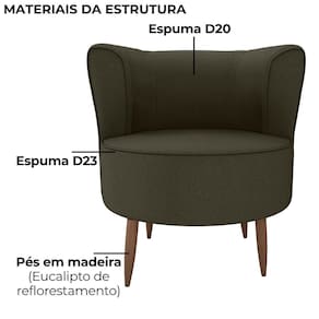 Poltrona Savana, charme orgânico com toque contemporâneo para sua decoração. Com estrutura em Madeira de Eucalipto (reflorestamento) e MDF. Estofada com espumas D23 (assento) e D20 (encosto), revestida em Veludo Light (toque mais leve e aveludado), possui formato arredondado com encosto tipo concha e 4 pés palito também em madeira. Este produto será entregue em 01 volume.