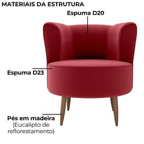 Poltrona Savana, charme orgânico com toque contemporâneo para sua decoração. Com estrutura em Madeira de Eucalipto (reflorestamento) e MDF. Estofada com espumas D23 (assento) e D20 (encosto), revestida em Veludo, possui formato arredondado com encosto tipo concha e 4 pés palito também em madeira. Este produto será entregue em 01 volume.