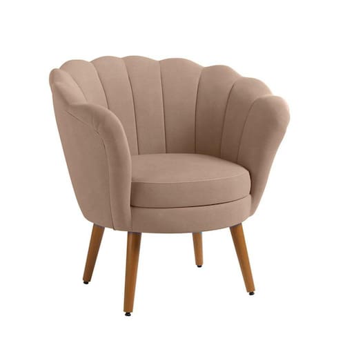 Poltrona Decorativa Pétala Pés Palito Veludo Bege Pés Palito - Kimi Design