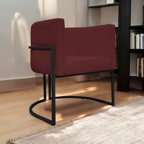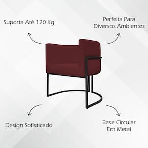 Poltrona Decorativa Recepção Luna Tecido Sintético Cores Base De Ferro Preta - Bordo, Corino