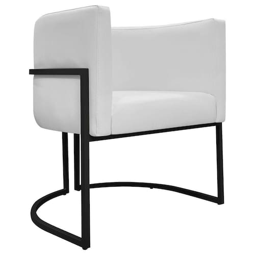 Poltrona Decorativa Recepção Luna Base De Ferro Preta - Branco Corino