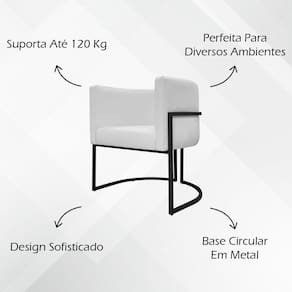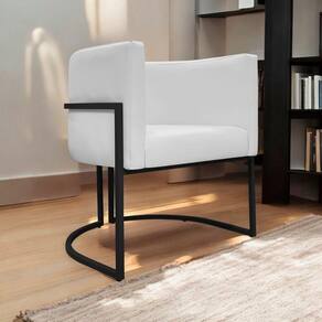 Poltrona Decorativa Recepção Luna Tecido Sintético Cores Base De Ferro Preta - Branco, Corino