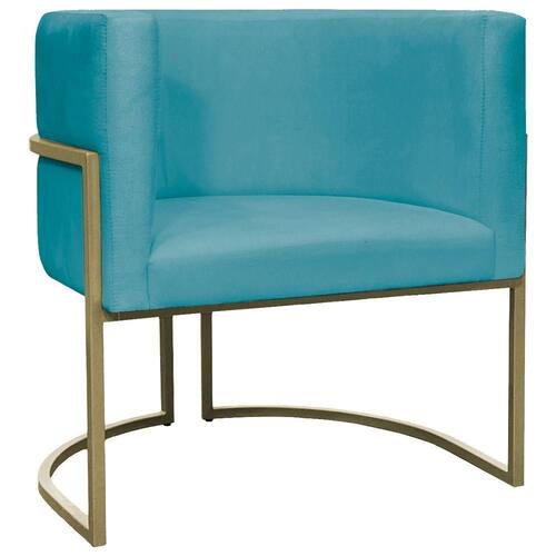 Poltrona Decorativa Recepção Luna Suede Base Ferro Champagne - Azul-turquesa, Suede
