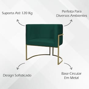 Poltrona Decorativa Recepção Luna Suede Base Ferro Champagne - Verde, Suede