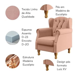 Transforme sua sala com a Poltrona Decorativa Rebeca, o móvel ideal para quem busca poltrona reforçada, elegante e moderna. Com design sofisticado, pés em estilo Luis XV e acabamento em linho rosê, ela é perfeita para dar aquele toque de charme e personalidade à sua recepção, escritório, quarto ou home office.