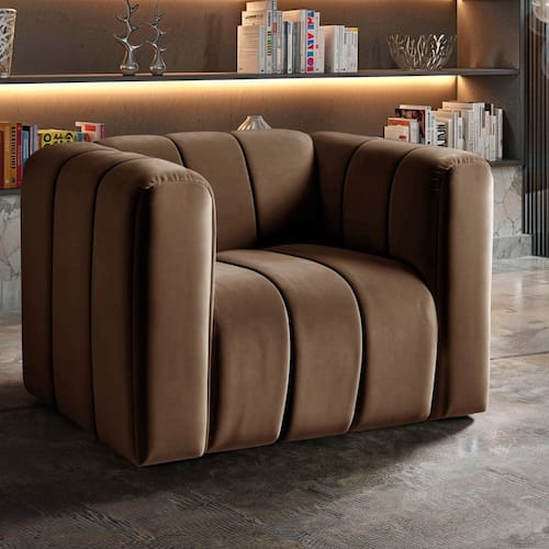 A tonalidade da cor do tecido pode variar de acordo com o lote do fabricante. Acompanha Almofadas extras: Não Acompanha Puff: Não Almofada do assento: Não Possui Almofada do encosto: Não Possui Altura do assento até o chão: 44 cm Altura do Encosto: 34 cm Ambiente Principal: Sala de Estar codigo_ean: 7900288123565 Cor: Marrom Cor do Produto: Marrom Design Assinado: Não Enchimento do Braço: Espuma D-26 Encosto para a Cabeça: Não Estampado: Não Extensível: Não Informações Complementares: 120Kg por acento Itens Inclusos: 1 Poltrona Linha ou Coleção: Chesterfield Marca: BELLA DECOR Material do Braço: Madeira Eucalipto Material dos Pés: Plástico Resistente Modelo de Poltrona: Fixo Necessita Montagem: Não Origem do Produto: Nacional Peso: 24 kg Possui Percintas Elásticas: Sim Possui Pés: 04 Possui Rodízio: Não Recomendações de Uso, Manutenção e Limpeza: Limpeza e cuidados: pode ser utilizado aspirador de pó, escova com cerdas macias ou limpeza a seco. Não utilizar produtos químicos, abrasivos ou limpeza a vapor. Evitar exposição prolongada ao sol. Suporta Até (kg): 120 kg Tecido Predominante: Veludo Tipo de Assento: Fixo Tipo de Encosto: Fixo Tipo de Poltrona: Decorativa