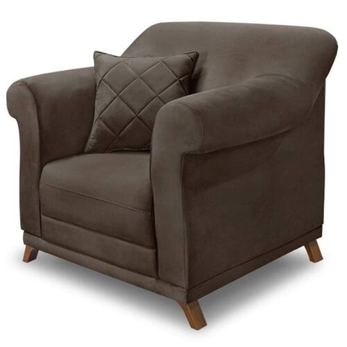A Poltrona Polo é uma ótima escolha para proporcionar o máximo de conforto e beleza ao seu espaço. Com um toque retrô clássico, possui 100cm de largura e revestimento em veludo deluxe, que oferece uma textura macia e agradável ao toque. Os pés em madeira maciça garantem durabilidade e resistência. Seu encosto fixo é confeccionado em espuma D23 e plumante de silicone, proporcionando suporte e maior comodidade ao uso. O assento fixo é composto por percintas elásticas italianas e espuma HR28 de alta resiliência, que se destaca pelo retorno rápido à sua forma, aliando conforto e longa vida útil ao produto. Acompanha charmosa almofada decorativa com enchimento em fibra de silicone e acabamento em matelassê, agregando ainda mais estilo e aconchego. Este móvel chegará em sua casa separado em 01 volume.