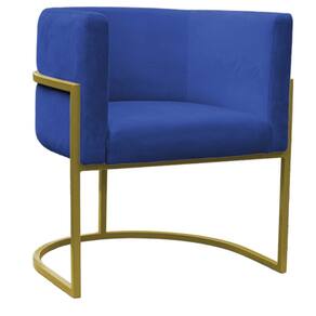 Poltrona Decorativa Sala Carla Base Ferro Dourada Suede - Azul Marinho