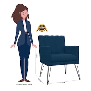 Poltrona Decorativa Sala de Estar com Pés de Ferro Cecília Suede Azul Marinho - LM DECOR