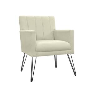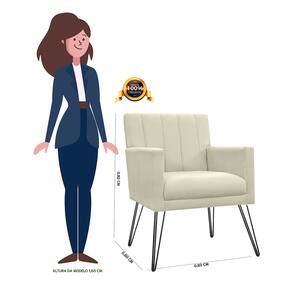 Poltrona Decorativa Sala de Estar com Pés de Ferro Cecília Suede Bege - LM DECOR