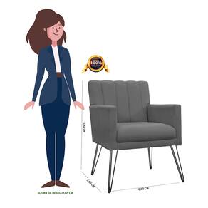Poltrona Decorativa Sala de Estar com Pés de Ferro Cecília Suede Cinza - LM DECOR