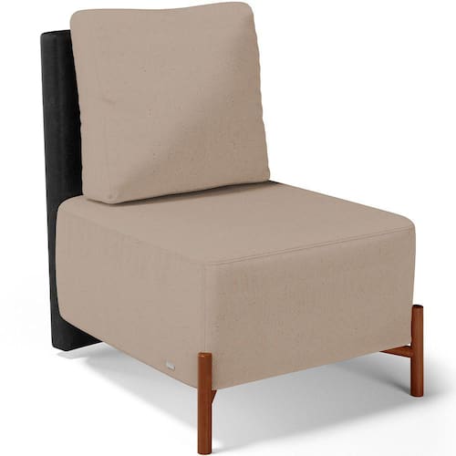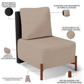 Revestimento do encosto em Couríssimo na cor Preto e do assento em Linho na cor Bege Escuro, de alta qualidade.
