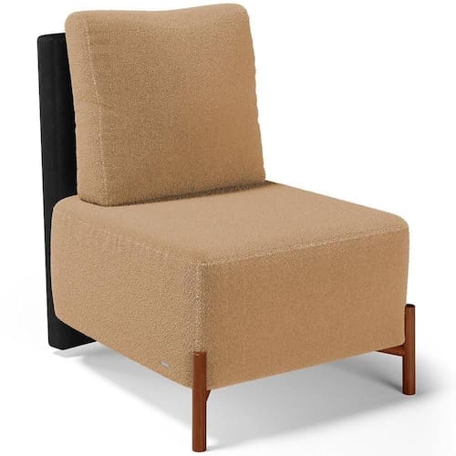 Poltrona Decorativa Sala De Estar Living Pés Madeira Hungria L02 Couríssimo Preto Bouclê Mostarda - Lyam