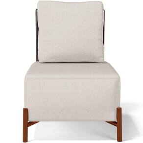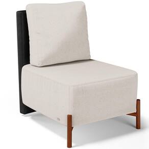 Poltrona Decorativa Sala de Estar Living Pés Madeira Hungria L02 Couríssimo Preto Linho Cru - Lyam - Off White