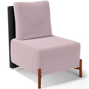 Poltrona Decorativa Sala De Estar Living Pés Madeira Hungria L02 Couríssimo Preto Suede Rosê - Lyam