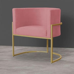 Poltrona Decorativa Sala de Estar Luana Base Gold Suede Rosa - Montanaris Decor