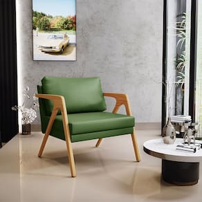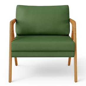 A Poltrona Decorativa Sala De Estar Pietra Com Estrutura De Madeira L02 Facto Verde Musgo - Lyam Decor se sobressai em qualquer ambiente, permite diversas combinações harmônicas e ainda proporciona muito aconchego. A mistura da estrutura de madeira com o revestimento convencional dela, somados ao seu ar geométrico garantem extrema originalidade e personalidade para sua decoração.