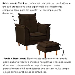Conforto Personalizado: Uma poltrona com puff proporciona um nível superior de conforto, permitindo que você estenda e eleve as pernas, o que ajuda a reduzir a pressão nas articulações e a melhorar a circulação sanguínea. Isso é especialmente benéfico após um longo dia de trabalho ou durante momentos de relaxamento.