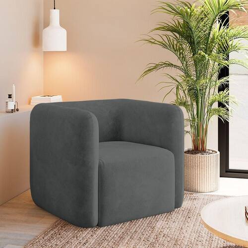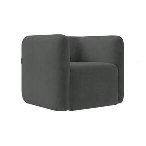 Poltrona Decorativa Sala De Estar Trinidad Base Fixa Veludo Grafite G33 - Gran Belo