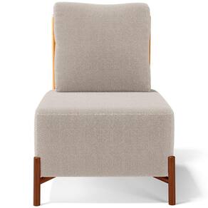 Poltrona Decorativa Sala Estar Living Pés Madeira Hungria L02 Couríssimo Whisky Bouclê Creme - Lyam - Bege Médio