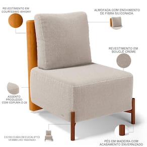 Revestimento do encosto em Couríssimo na cor Whisky do assento em Bouclê na cor Creme, de alta qualidade.