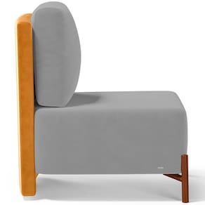 Poltrona Decorativa Sala Estar Living Pés Madeira Hungria L02 Couríssimo Whisky Suede Cinza - Lyam