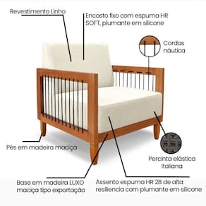 Madeira Maciça Eucalipto,Espuma: HR 28 - poliuretano de alta resiliência,Tecido: LinhoVendido e entregue por ONLINE CONFORT