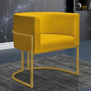Poltrona Decorativa Sala Nayara Base Ferro Dourado Suede - Amarelo