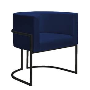 Poltrona Decorativa Sala Nayara Base Ferro Preto Suede - Azul Marinho