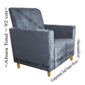 ------------------------------------------------------------------------------- Medidas Comprimento Total Frente= 69 cm Comprimento Assento = 52 cm Profundidade Total = 74 cm Profundidade Assento 51 cm Altura Total = 92 cm Altura Encosto = 61 cm Altura Assento = 43 cm